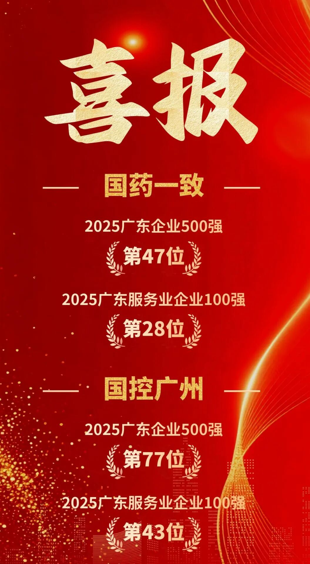 国药一致(000028)位列2025广东企业500强第47位,较去年上升2位;位列2025广东服务业企业100强第28位,较去年上升1位。
